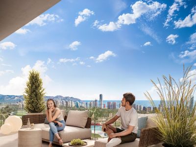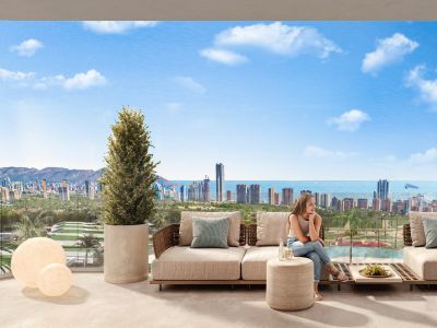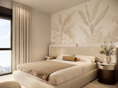 La luz natural, las distribuciones inteligentes y los materiales de la más alta calidad crean espacios para vivir, relajarse e inspirarse. Las ventanas ofrecen vistas impresionantes de Benidorm, con su vibrante ambiente, y de la majestuosa montaña Puig Campana, que dota al paisaje de una monumentalidad y un encanto especiales.