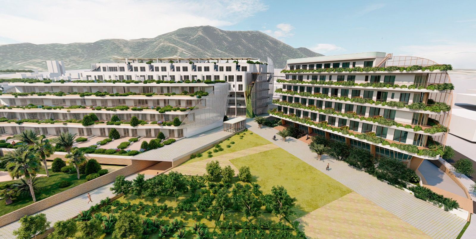 The uniqueness of the complex is its huge gardens and large terraces with an area of 20 to 130 m2, from where you can see the magnificent sea and the natural park.