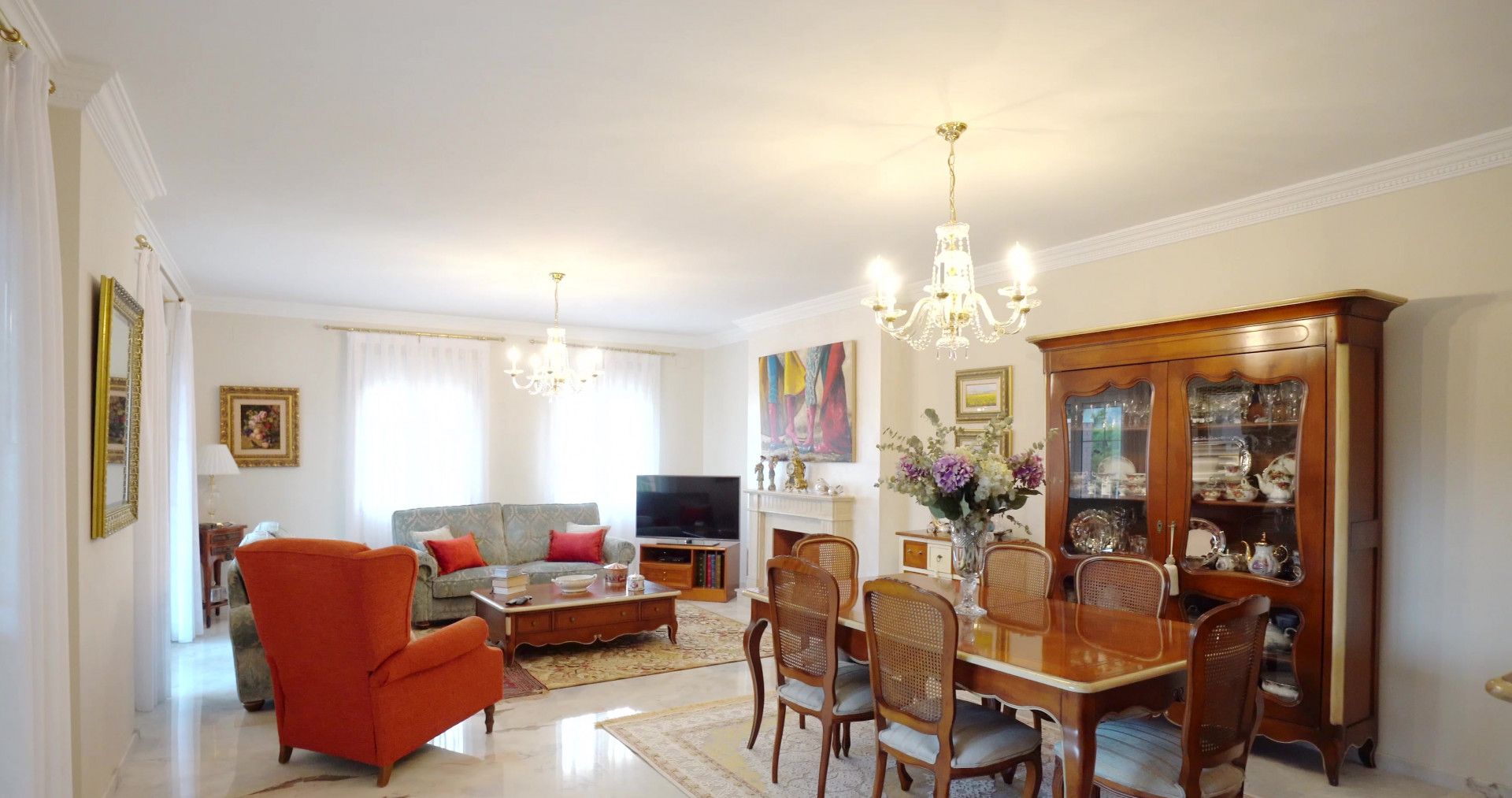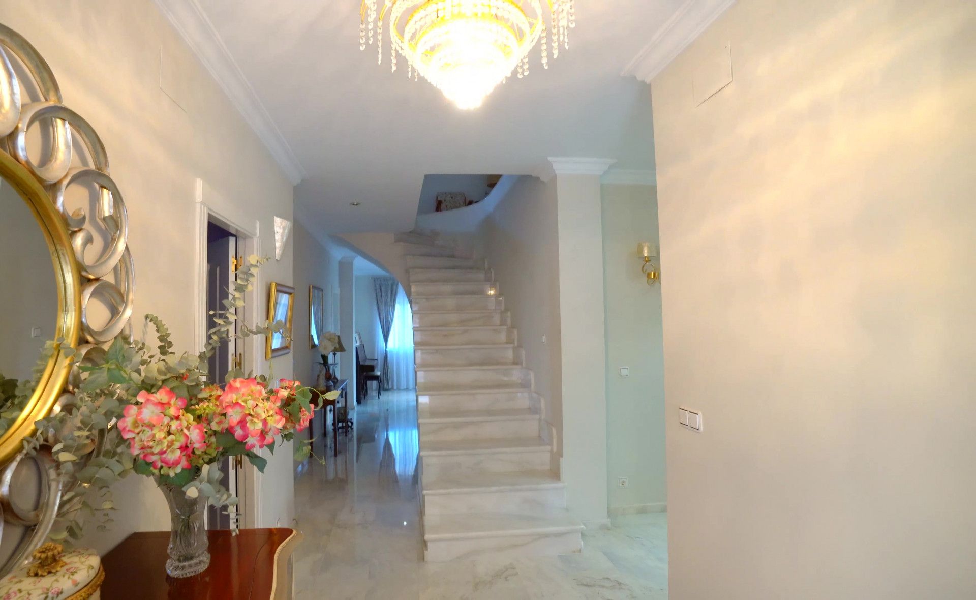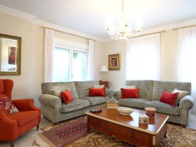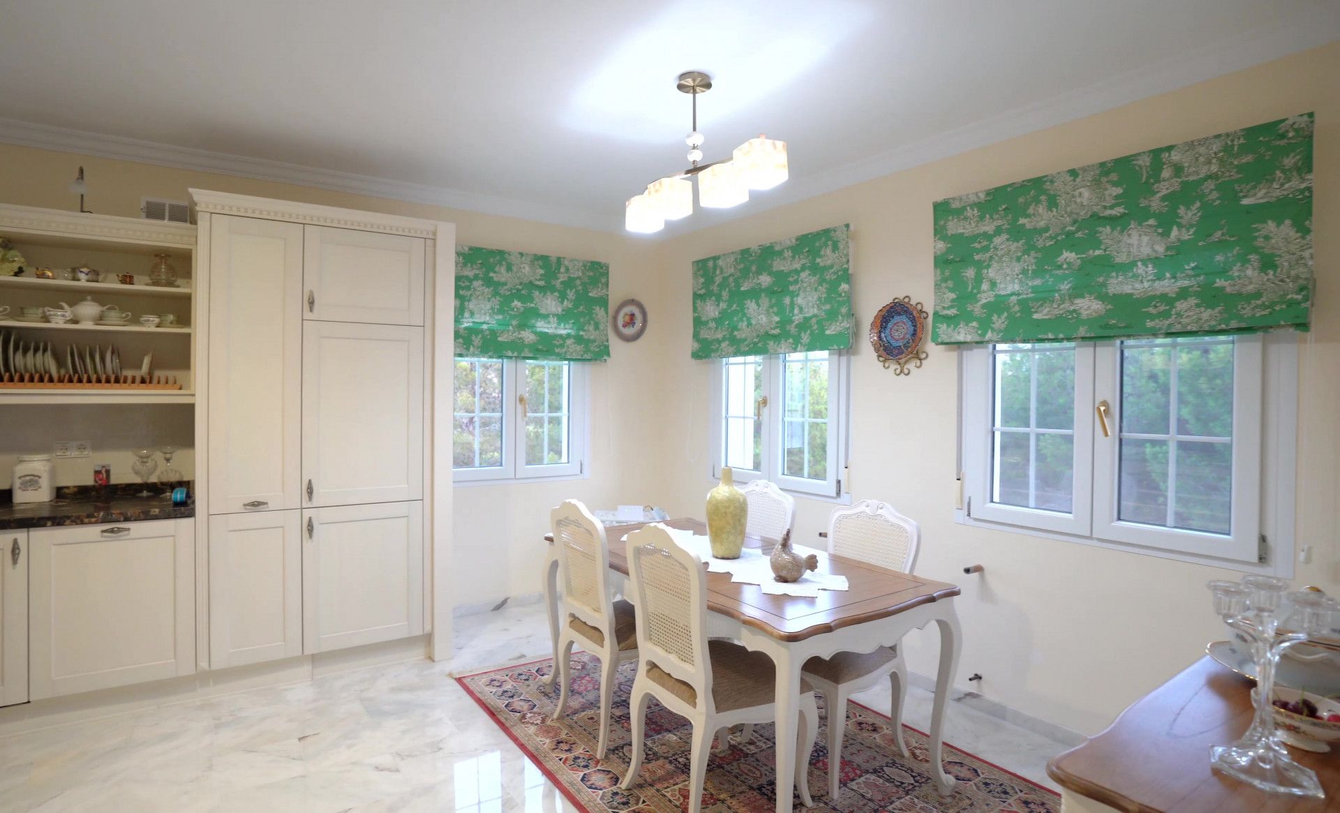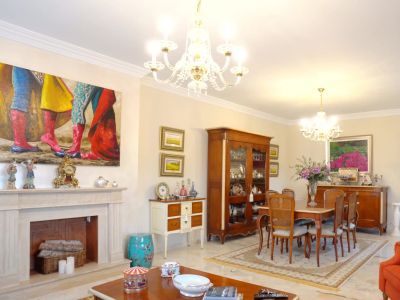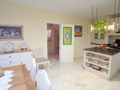 El primer piso con entrada independiente y una terraza soleada tiene 4 amplios dormitorios, 2 baños, una cocina con comedor y chimenea, un trastero. Una elegante escalera de mármol, que entra por la segunda puerta de la villa, conduce al segundo piso, donde hay 2 amplios dormitorios con elegantes baños, una moderna cocina y una sala de estar con acceso a una terraza con vista a las montañas. La planta ático consta de 3 dormitorios con baños en suite e impresionantes vistas al mar y a la montaña.