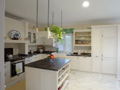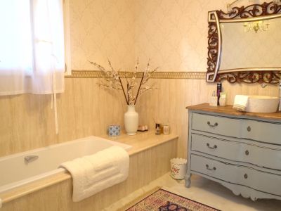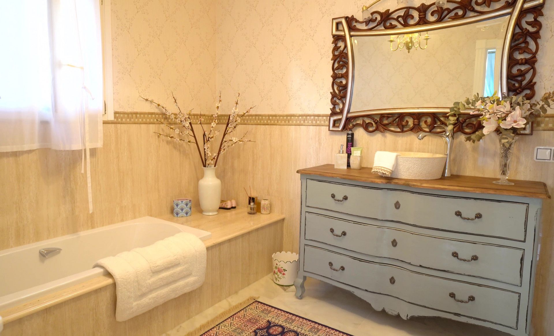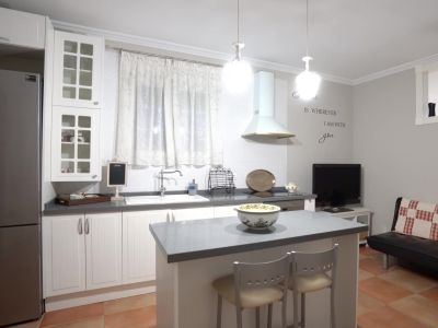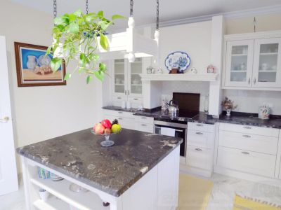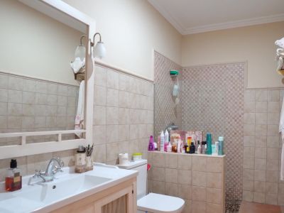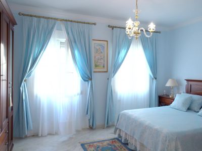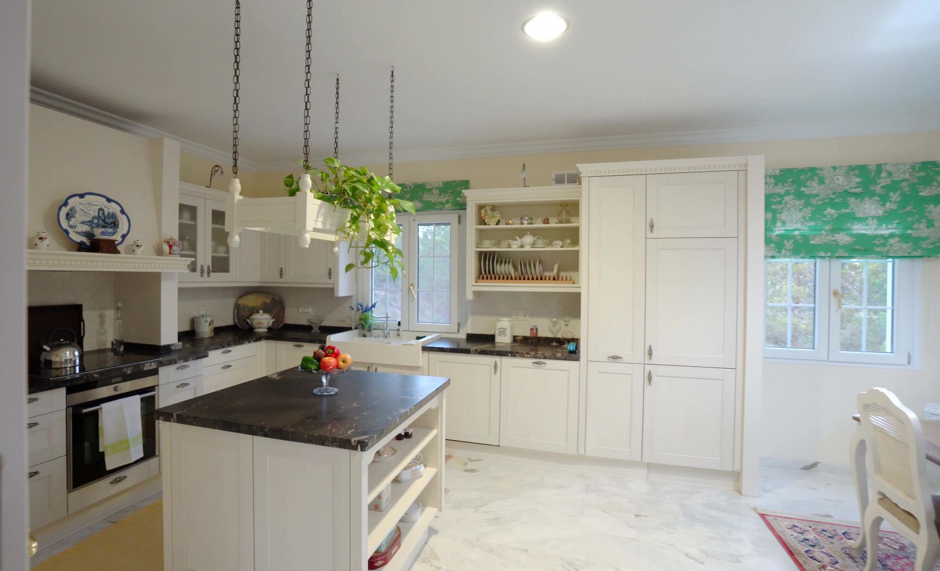 El primer piso con entrada independiente y una terraza soleada tiene 4 amplios dormitorios, 2 baños, una cocina con comedor y chimenea, un trastero. Una elegante escalera de mármol, que entra por la segunda puerta de la villa, conduce al segundo piso, donde hay 2 amplios dormitorios con elegantes baños, una moderna cocina y una sala de estar con acceso a una terraza con vista a las montañas. La planta ático consta de 3 dormitorios con baños en suite e impresionantes vistas al mar y a la montaña.