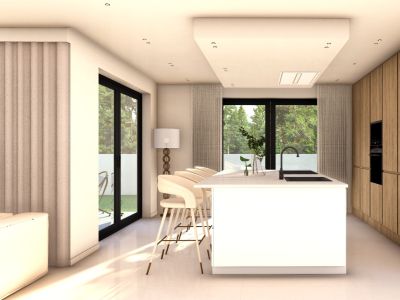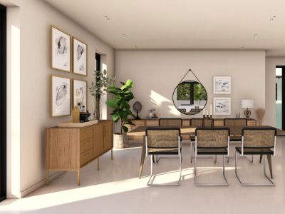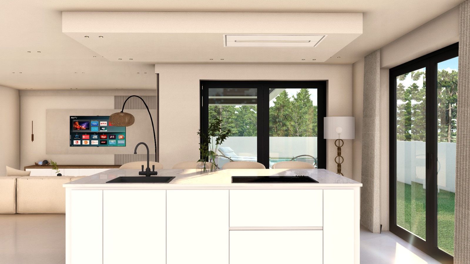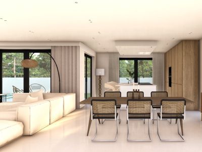 Los interiores luminosos, repletos de luz natural, crean una atmósfera de amplitud y libertad. El uso de materiales de primera calidad y acabados impecables realzan el prestigio de estas residencias. La certificación BREEAM garantiza los más altos niveles de eficiencia energética y respeto por el medio ambiente. La sala de estar de planta abierta invita a compartir momentos inolvidables con familiares y amigos. La perfecta conexión entre la cocina y las zonas comunes fomenta la interacción social, convirtiéndola en el lugar perfecto para cocinar, socializar y relajarse. El espacioso salón se convertirá en el centro de la vida familiar, ofreciendo impresionantes vistas a la piscina y al mar. Los dormitorios están diseñados para ser un verdadero oasis de tranquilidad y confort.