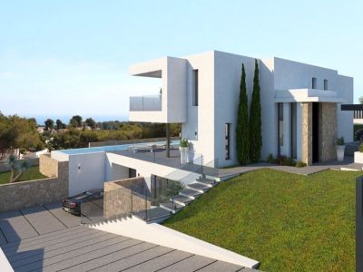 villa Moderna con impresionantes vistas al mar mediterráneo y a las montañas.