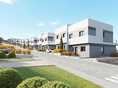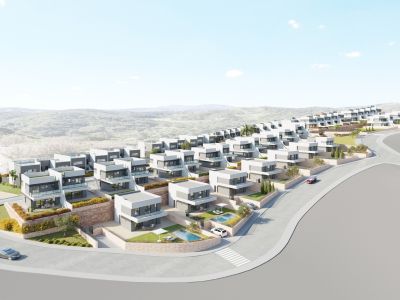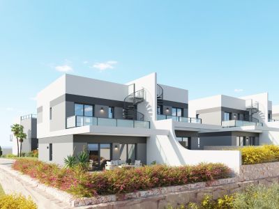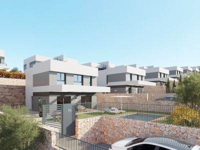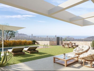 Villas pareadas, adosadas y villas independientes en la segunda fase de un complejo moderno con impresionantes vistas a las zonas comunes con piscina y jardines privados, con vistas a la naturaleza, al horizonte de Benidorm y algunas con vistas al mar Mediterráneo.
