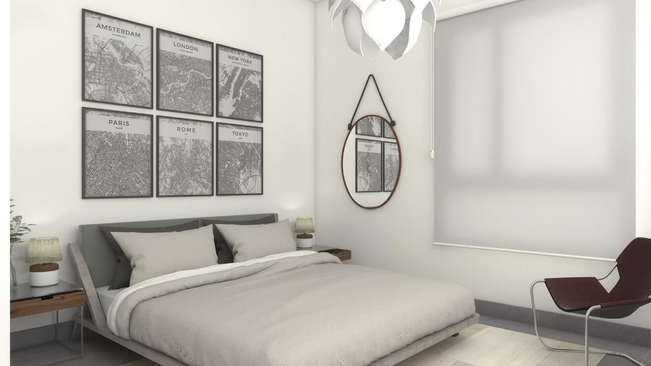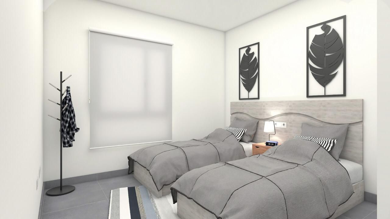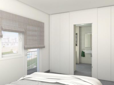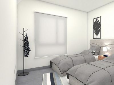 - Roll-up curtains, with a compact type of tambucho in the bedrooms.