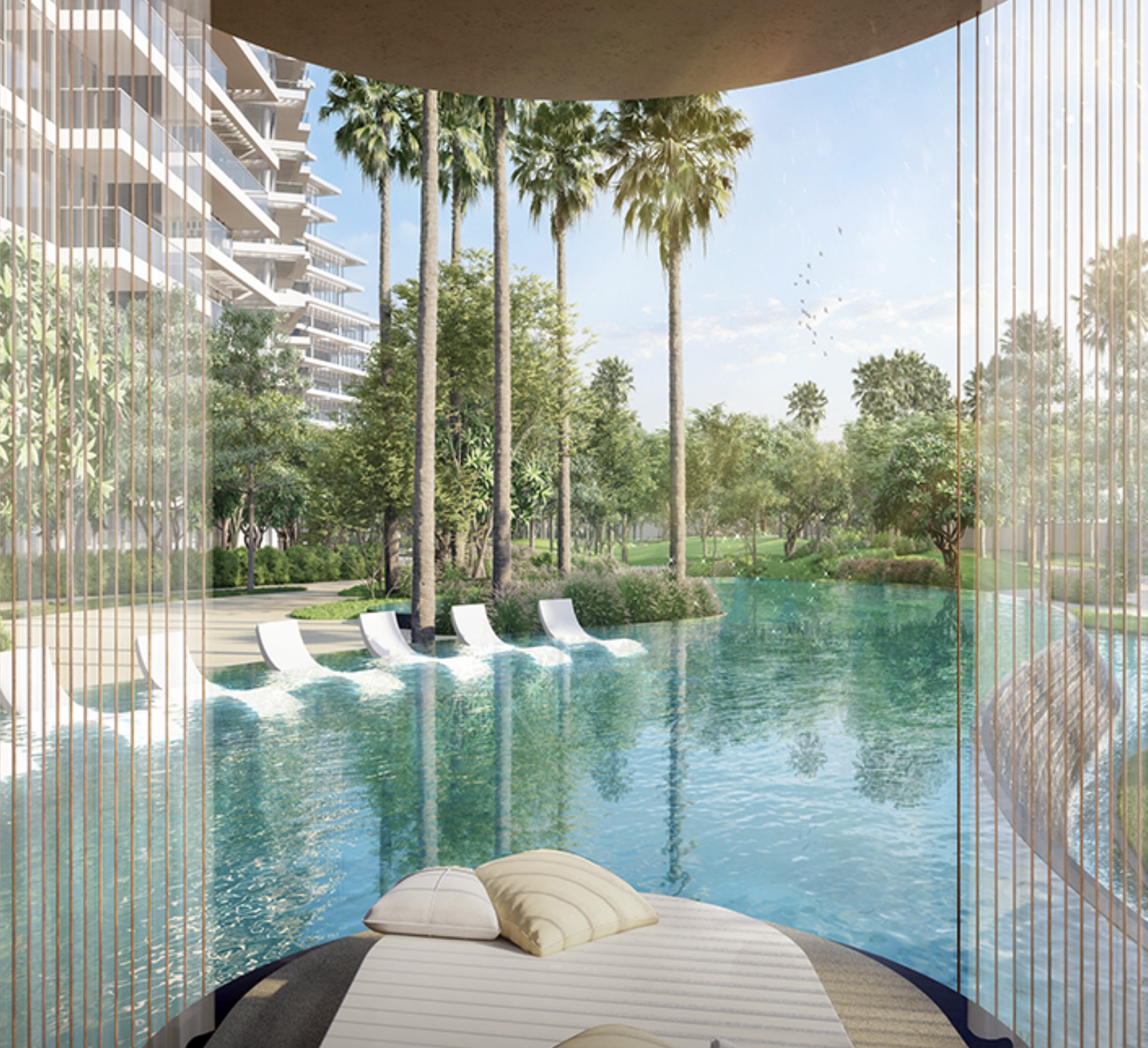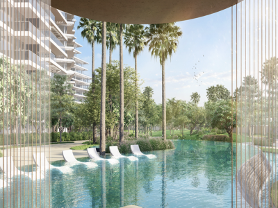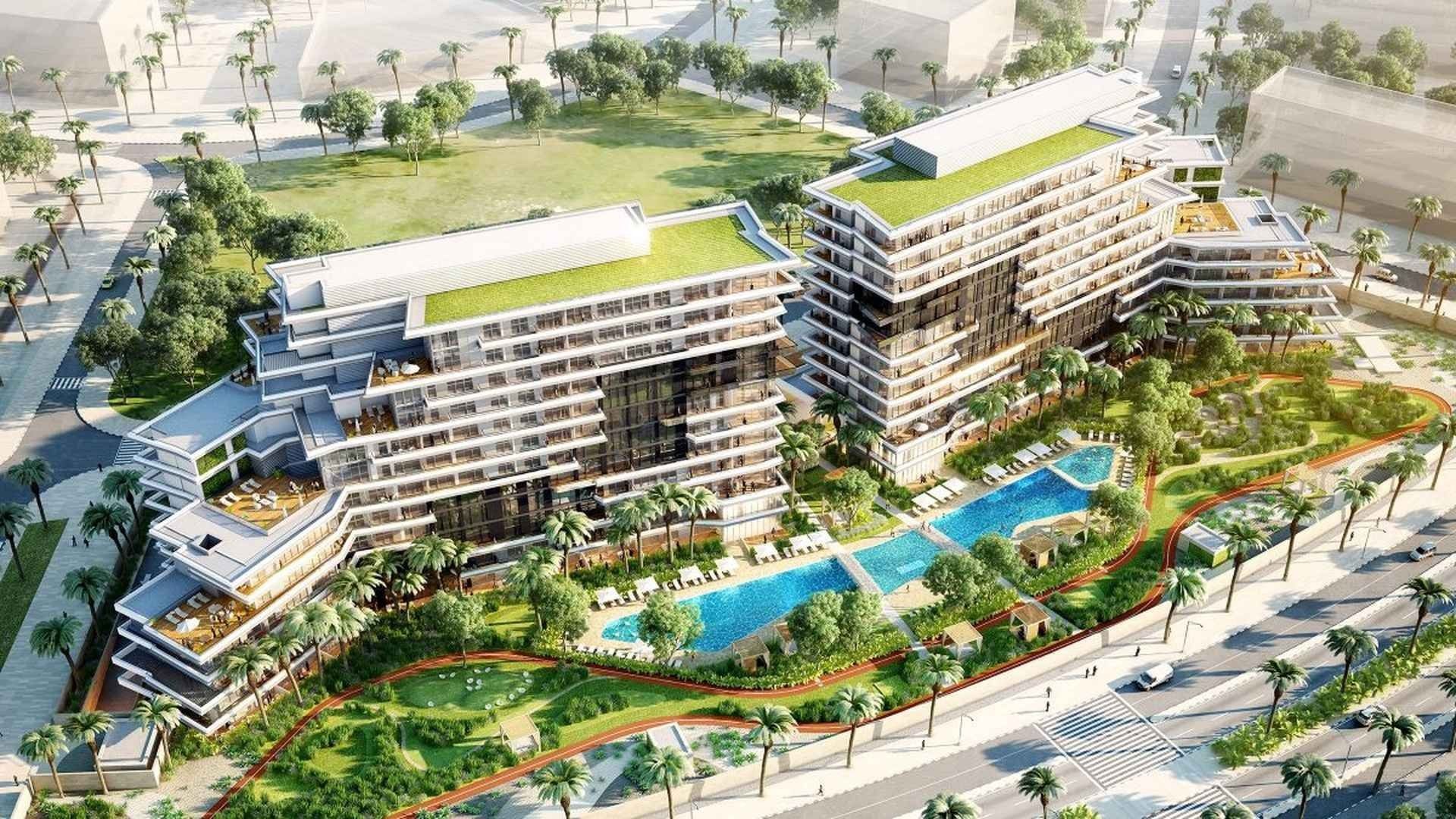 The premium complex recalls the shapes of the valleys and cliffs with cascading terraces. The two buildings are connected by a zen-style triple-height lobby. Presents an individual choice of superb 1-3 bedroom flats and 2-4 bedroom duplexes, which feature private balconies or spacious terraces overlooking the scenic Ras Al Khor Nature Reserve. It is worth noting that some duplexes have a magnificent terrace with a private pool to provide an unforgettable resort-style atmosphere.